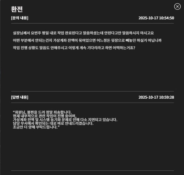 2200환전 신청하니깐 가상계좌가 문제가 있다더니 환전을 지금까지 계속미루고 있습니다