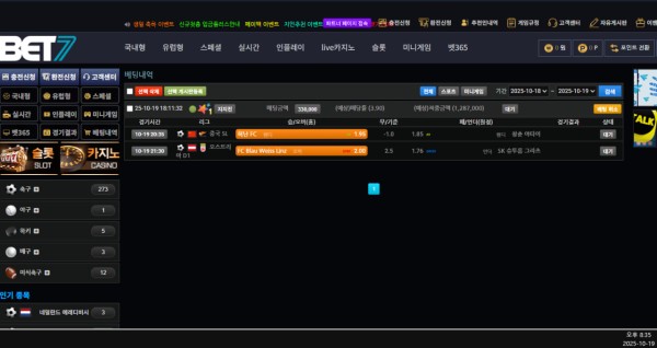 | 사이트이름 | 벳7 (url : bet7-777.com) |